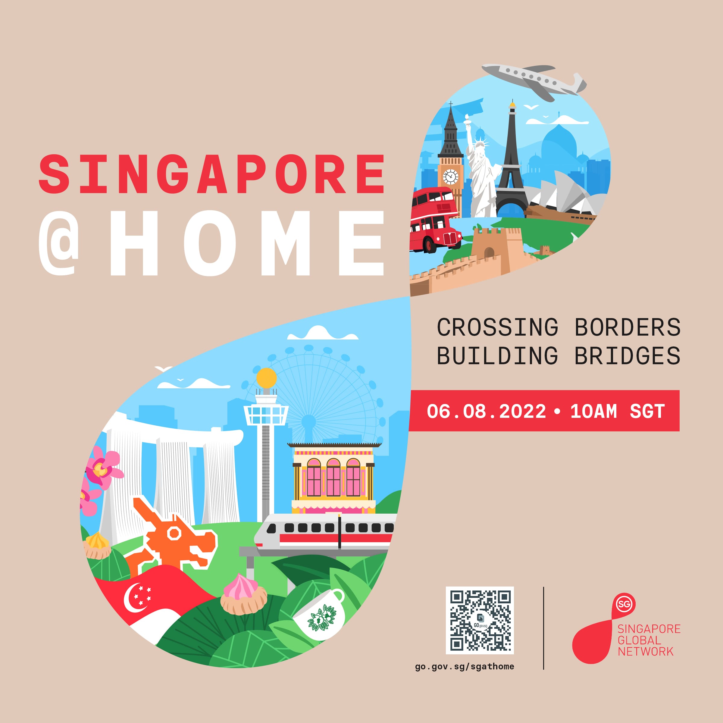Come 6 August, cross borders and build bridges with the @Singapore Global Network and join us for an early National Day celebration with Singapore @ Home! Hosted by Hossan Leong and Siti Khalijah, Singapore @ Home is an online extravaganza for Singaporeans and friends of Singapore around the world to celebrate Singapore’s birthday. It will feature a special appearance by Deputy Prime Minister and Minister for Finance Lawrence Wong, and performances by popular homegrown artistes Annette Lee & Benjamin Kheng, Joanna Dong, Taufik Batisah and Kartik Kuna.